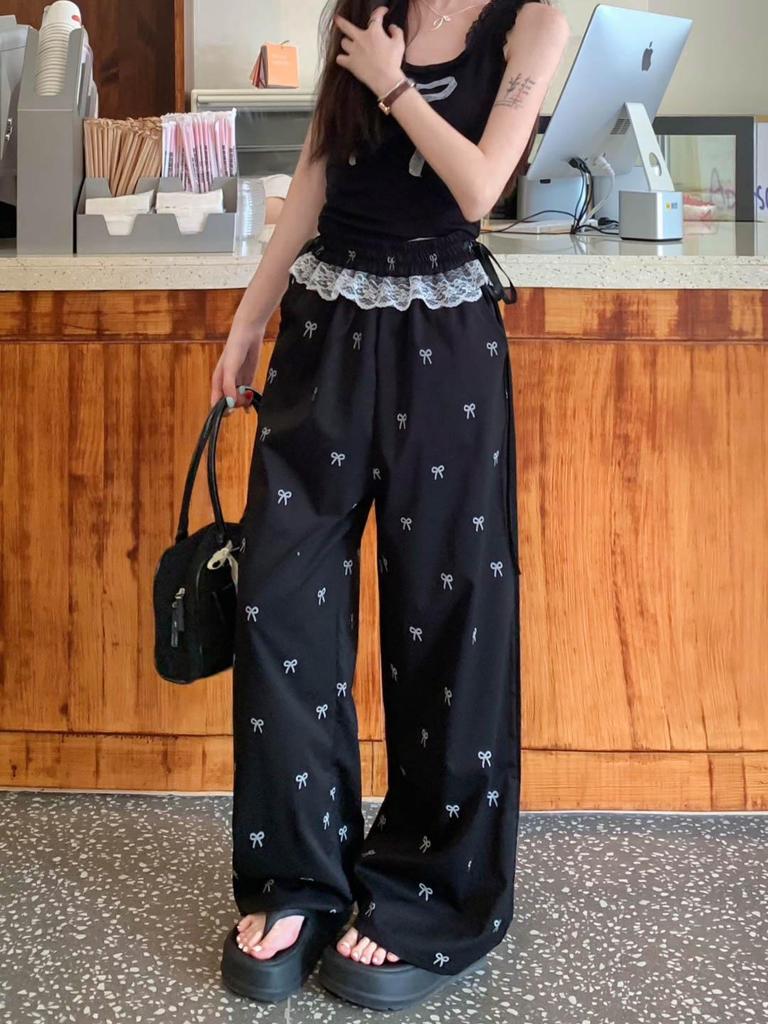 Женские летние кружевные брюки с широкими штанинами и эластичным поясом