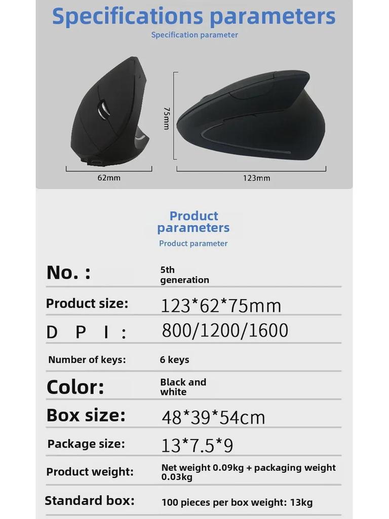 Леворукая перезаряжаемая беспроводная Bluetooth вертикальная игровая мышь