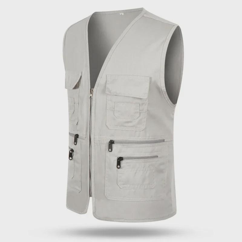 Хлопковый жилет без рукавов с V-образным вырезом и карманом на молнии — комфорт на все времена года — купить товар онлайн с бесплатной доставкой по всему миру!