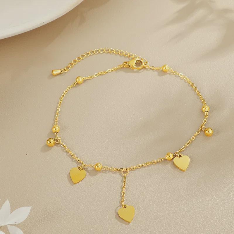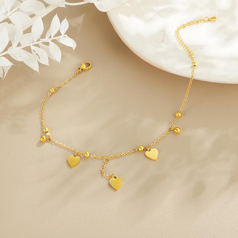 МодельБраслет на щиколотку J79 с кисточкой в форме сердца, золото