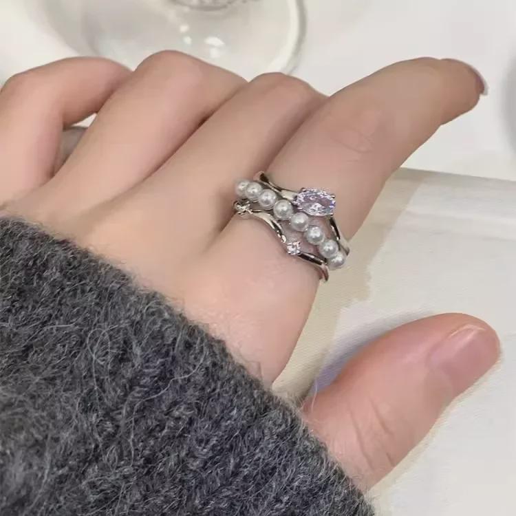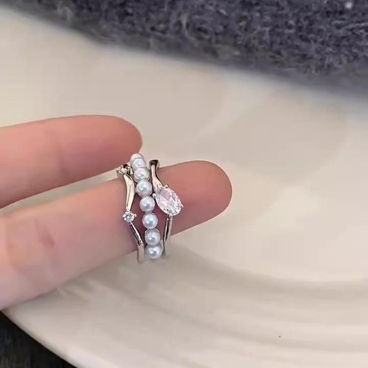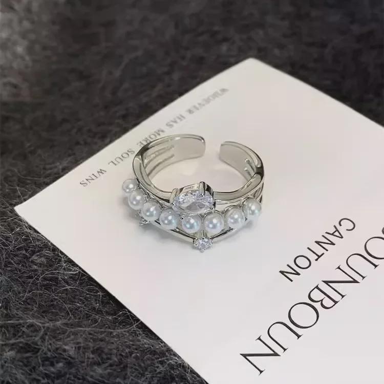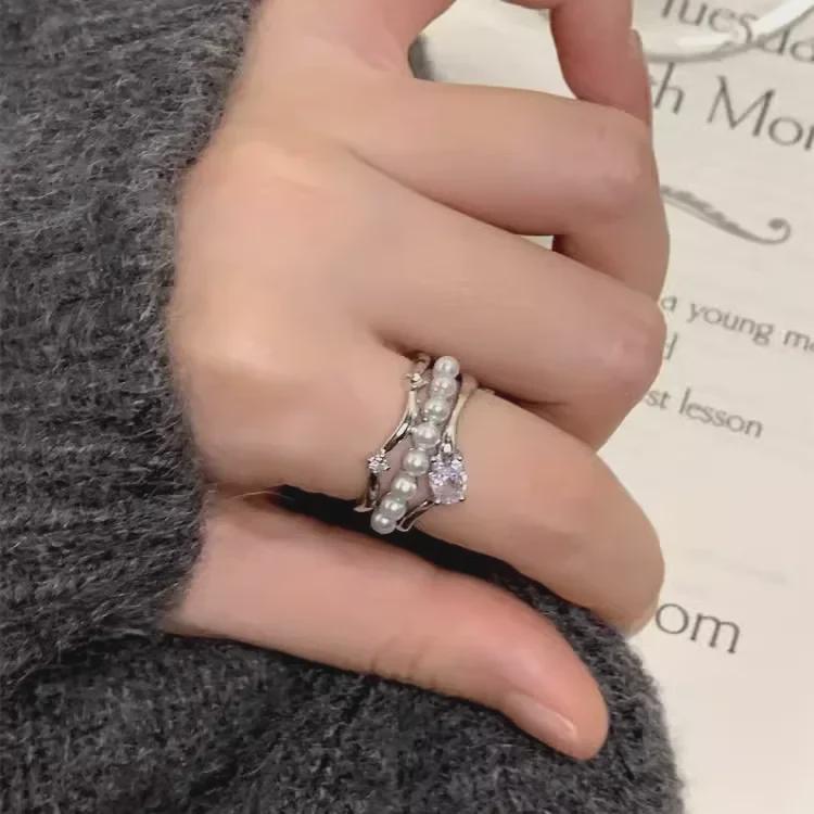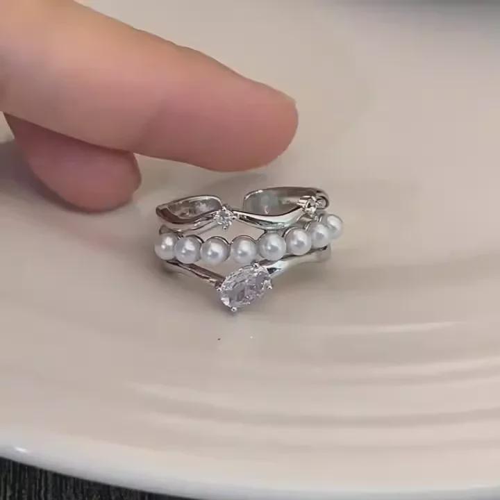 Роскошное многослойное кольцо с жемчугом и цирконием: Модный и уникальный дизайн указательного пальца для женщин