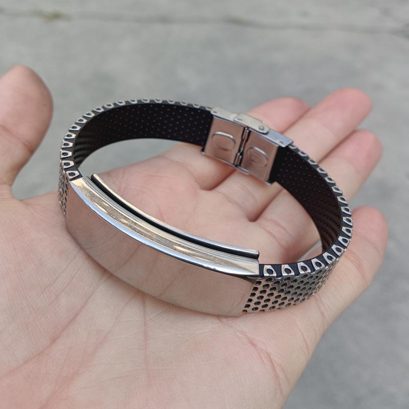 Европейский и американский мужской гравированный магнитный браслет из нержавеющей стали и ПВХ — купить товар онлайн с бесплатной доставкой по всему миру!