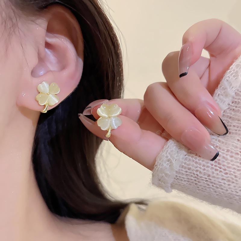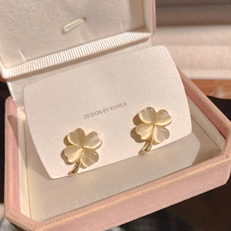 Серьги с четырьмя листочками клевера из серебра 925 пробы «кошачий глаз»: Модный, высококачественный летний аксессуар для женщин