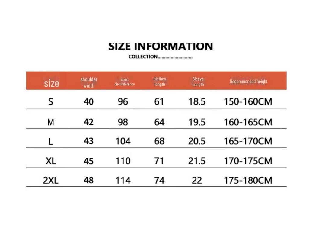 размер: 2XL, плечо: 48 см, бюст: 114см, длина: 74 см, рукав: 22 см, рекомендуемая высота: 175-180см.