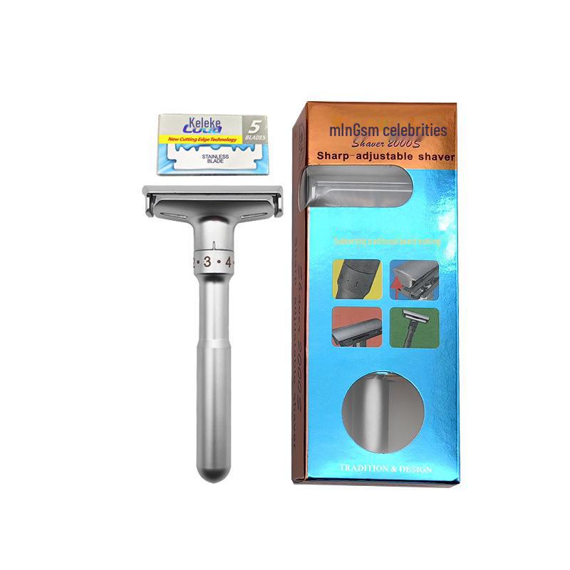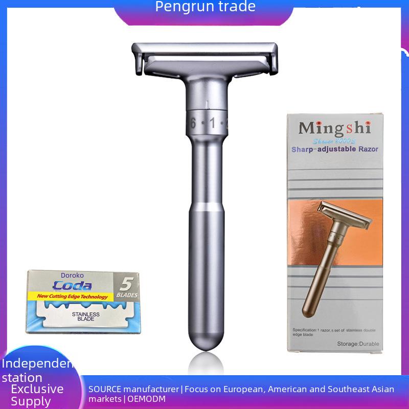 Регулируемая двухсторонняя ручная бритва Mingshi - моющийся держатель из нержавеющей стали, улучшенная модель с регулируемой остротой