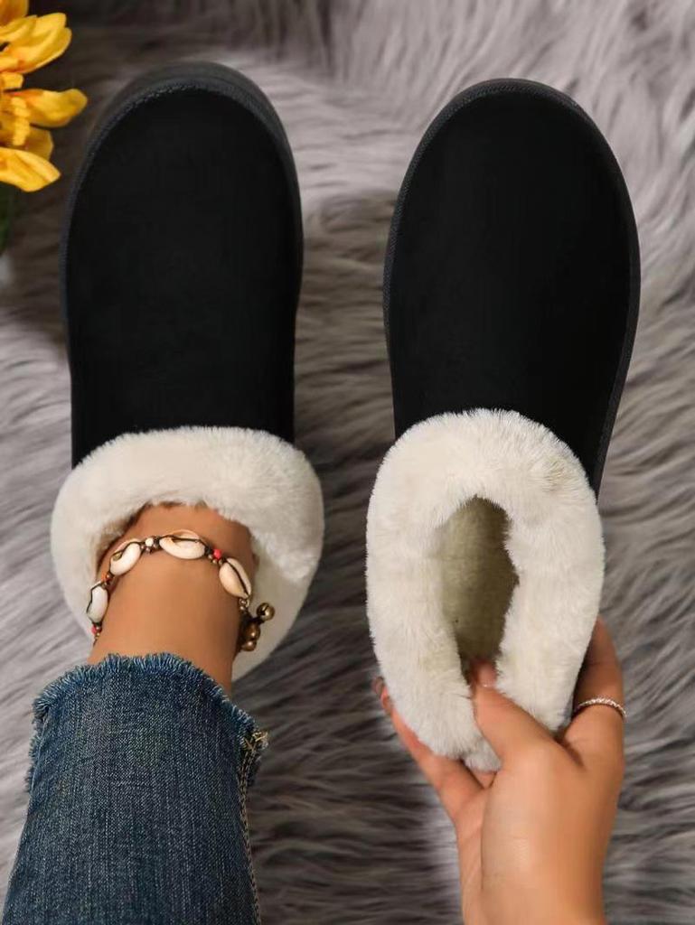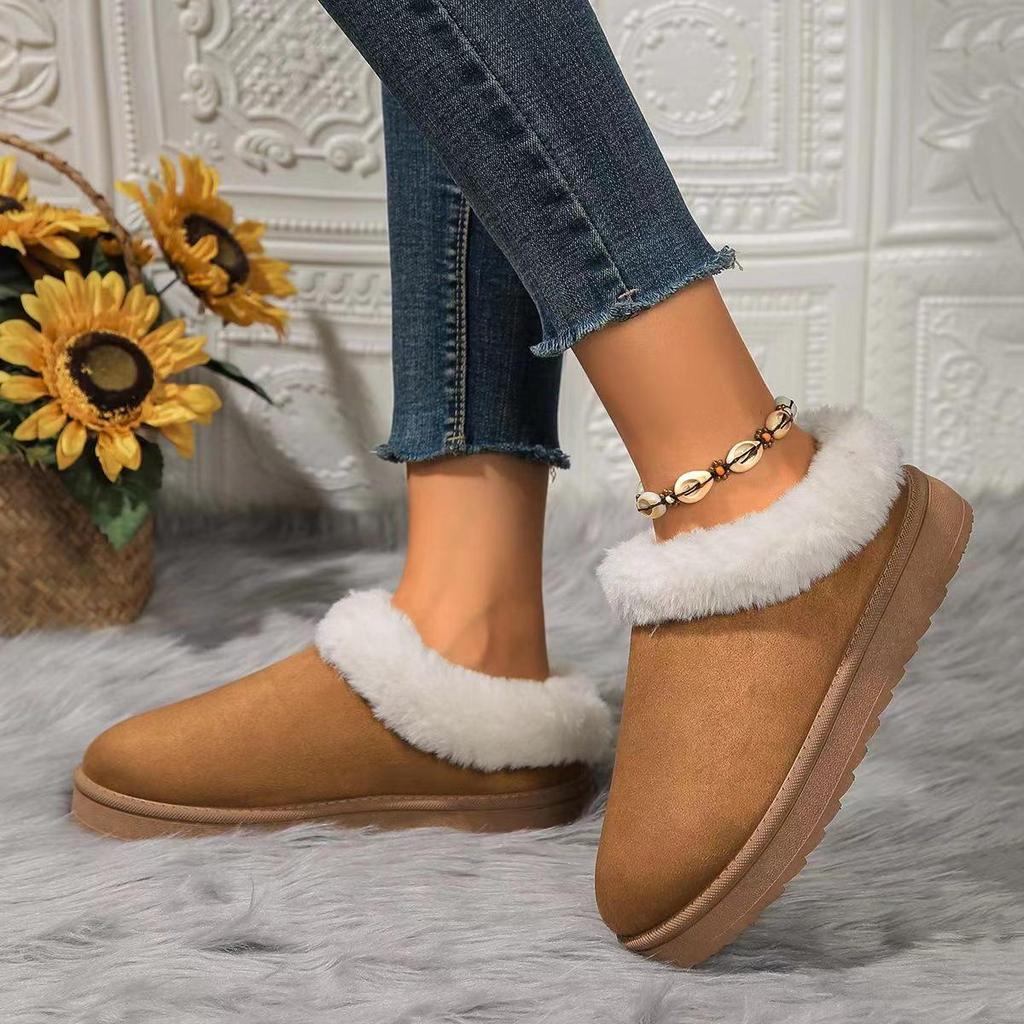 Женские меховые зимние сапоги 2024 года: Новый корейский стиль, толстая подошва, без застежек, большой размер