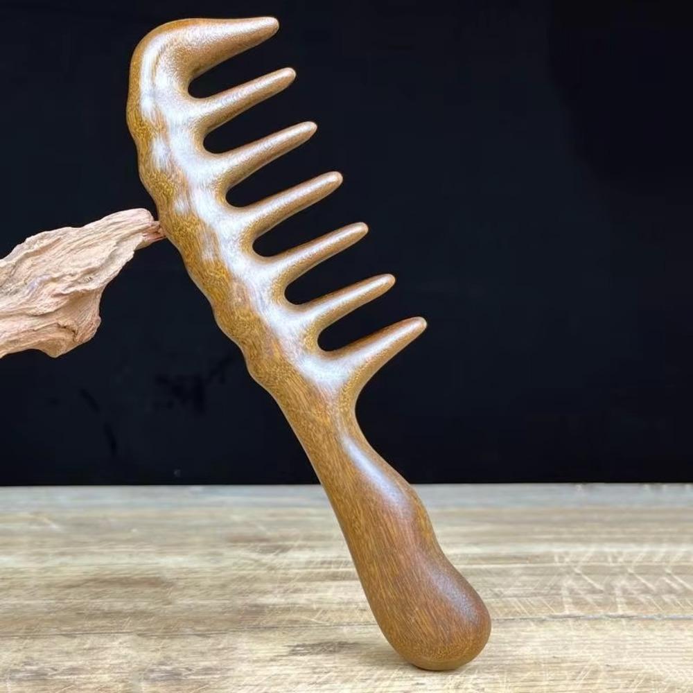 2. **Материал из сандалового дерева высшего качества**: Изготовленная из высококачественного сандалового дерева, эта расческа с широкими зубьями не только прочная и долговечная, но и имеет натуральный аромат.. Материал из сандалового дерева обеспечивает гладкое и приятное расчесывание, добавляя при этом нотку роскоши.
