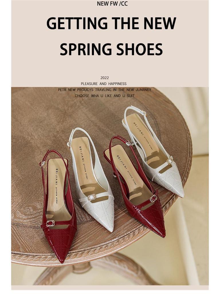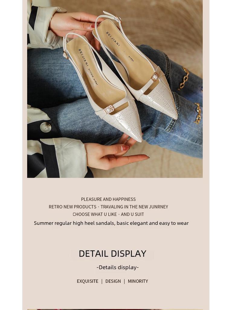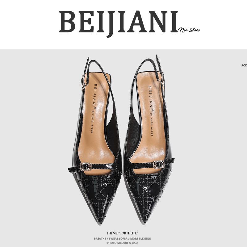 Женские босоножки Baotou Stiletto 2025: Острый носок, высокие каблуки, лакированная кожа, овчина, ремешок сзади