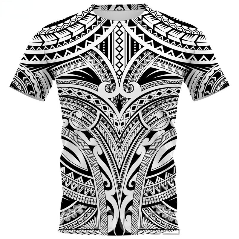 2025 Европейская и американская повседневная футболка с круглым вырезом, топы, 3D-принт, татуировка викинга, полинезийский стиль, футболка мужская, роскошная дизайнерская футболка