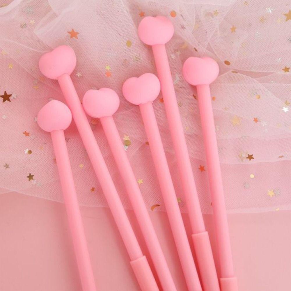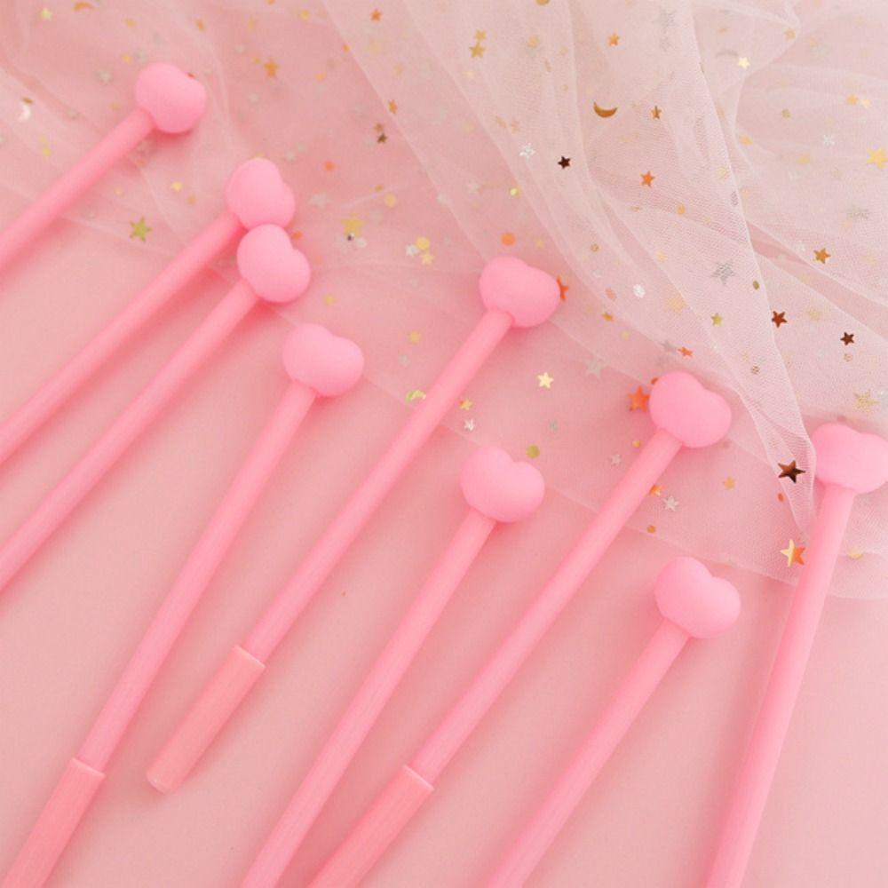 10pcs Cartoon Kawaii Stationery Black Ink Writing Pen Comfortable Love Heart Neutral Pen Gift
