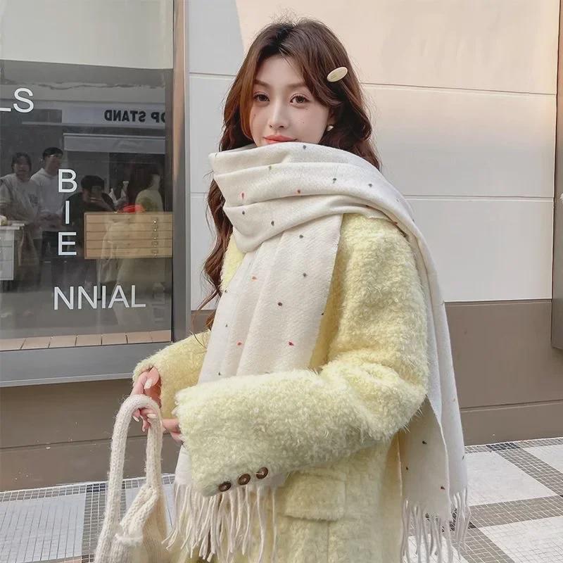 Элегантный звездно-белый шарф для женщин – осенне-зимняя шаль с кисточками и волнистым узором в горошек, корейский стиль