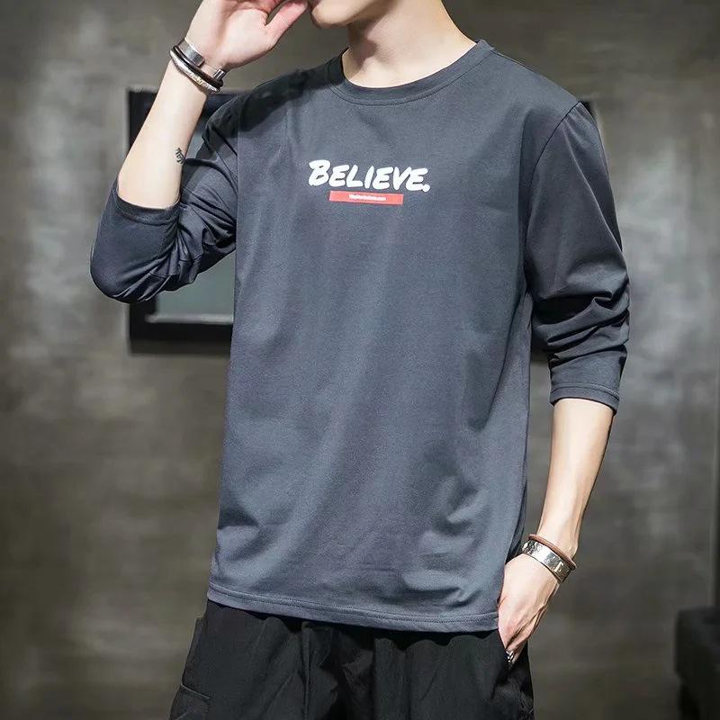 2020 Мужская повседневная футболка с круглым вырезом и длинным рукавом - модная осень/зима