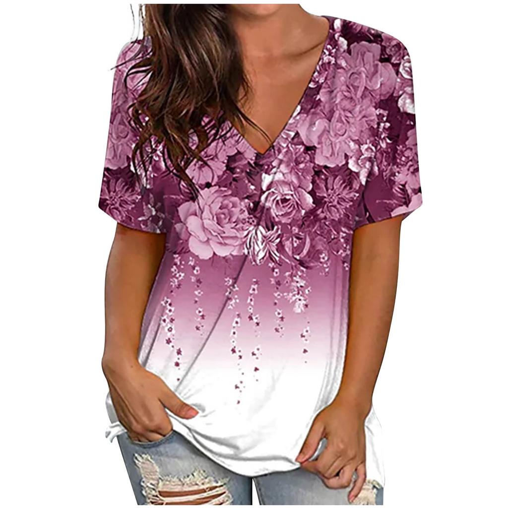 Модная женская футболка с V-образным вырезом, элегантная, модная, с коротким рукавом, летняя, с 3D-принтом, с цветочным принтом, свободные топы, несколько цветов — купить товар онлайн с бесплатной доставкой по всему миру!