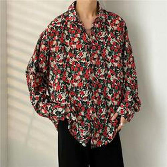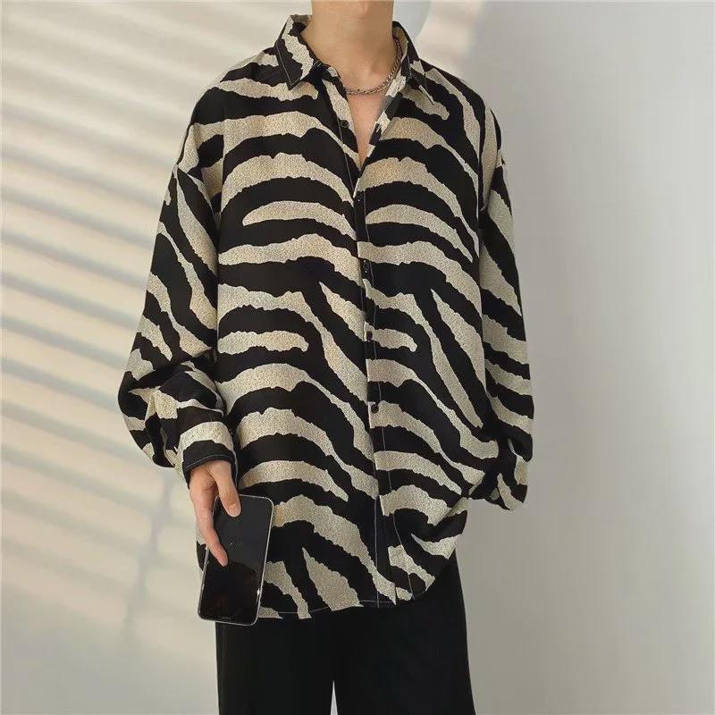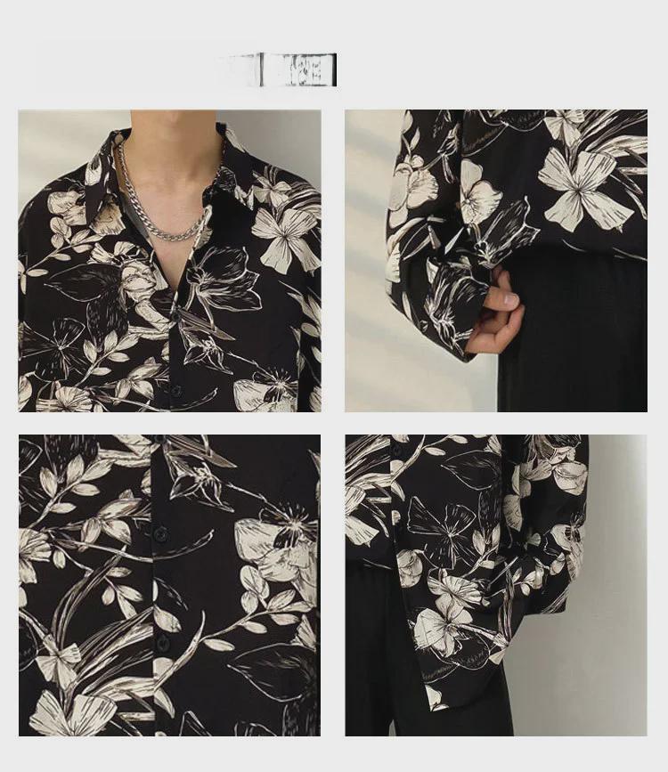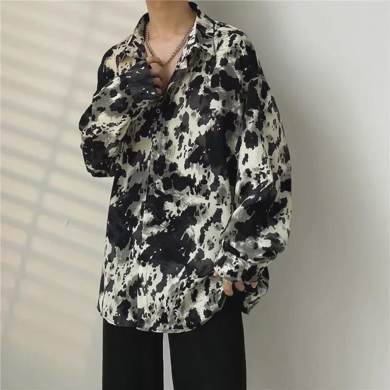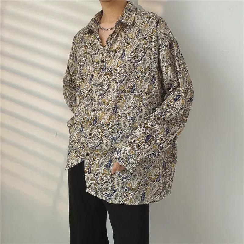 Мужская повседневная рубашка с длинным рукавом в японском стиле с принтом и принтом