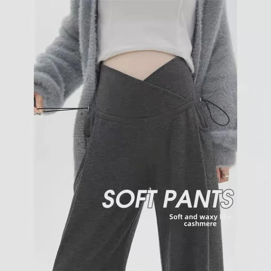 Корейские брюки для беременных с широкими штанинами: Поддержка живота, повседневный ретро-стиль, подходит для всех сезонов
