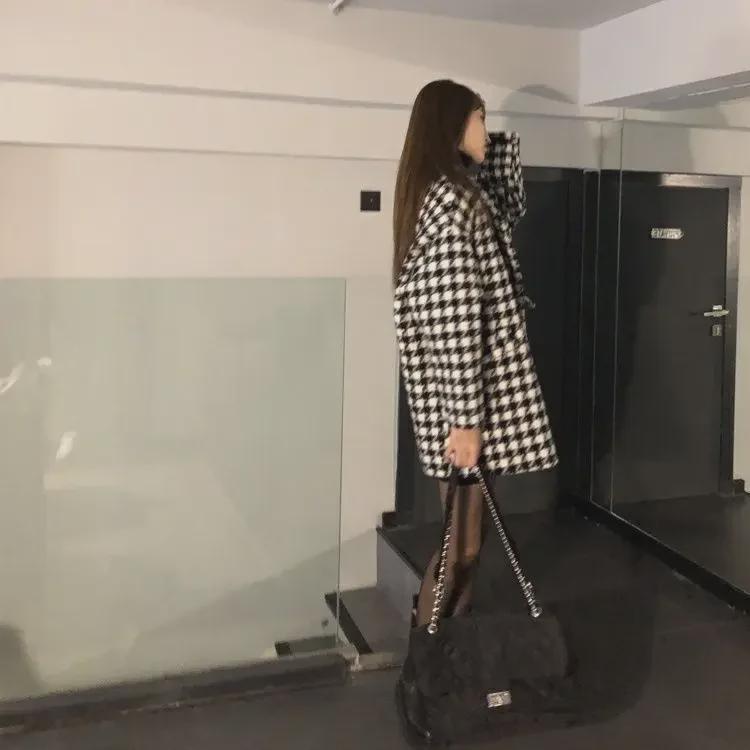 Шикарный женский шерстяной пиджак средней длины с узором «гусиная лапка»