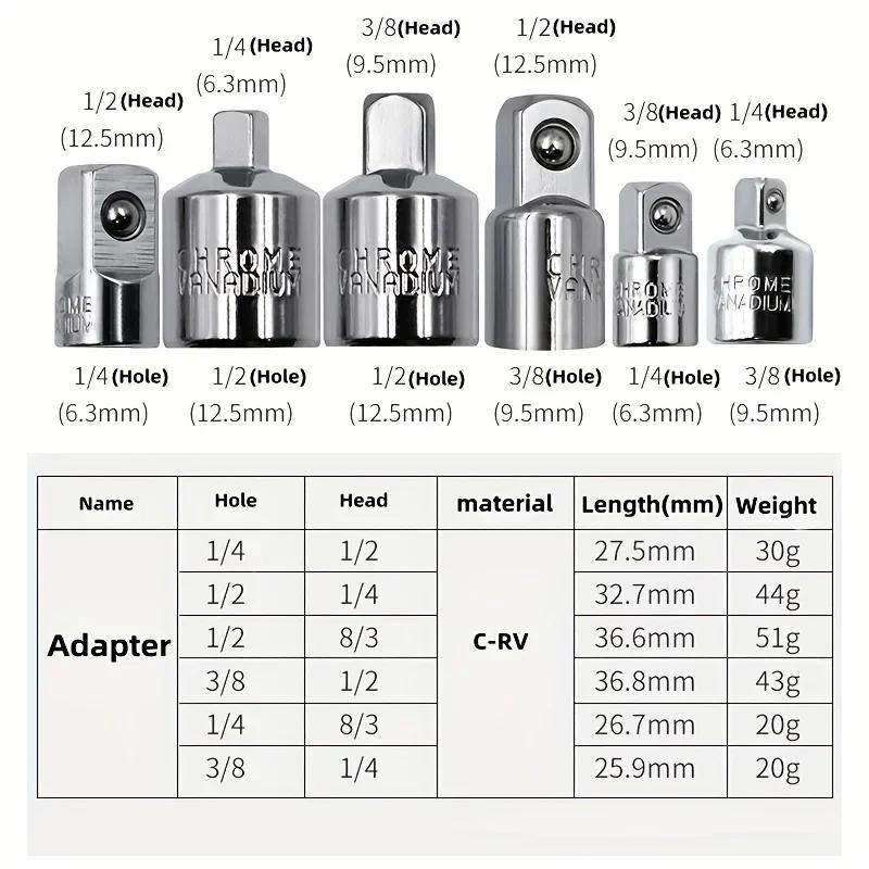 Адаптер для торцевых головок с трещоткой 1/2 дюйма, 3/8 дюйма, 1/4 дюйма CR-V хром-ванадиевая сталь для ремонта автомобиля, велосипеда, гаража, дома, инструментов