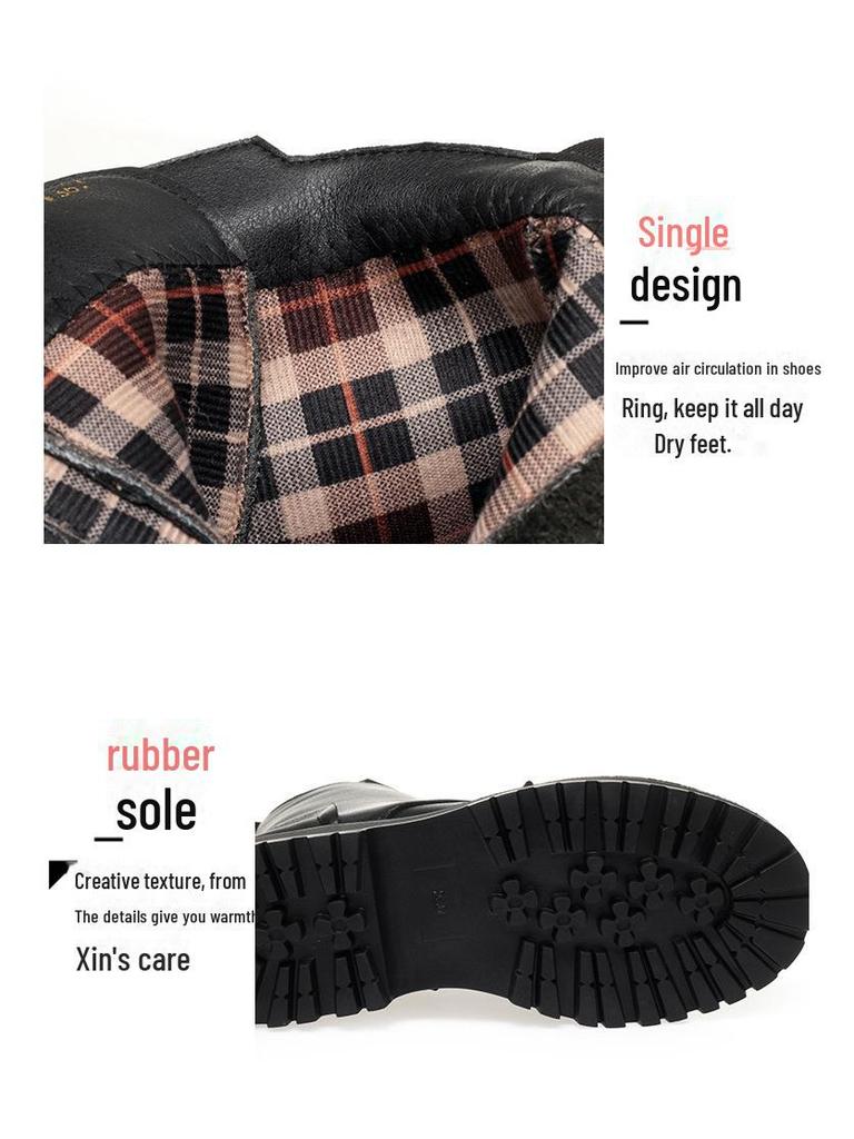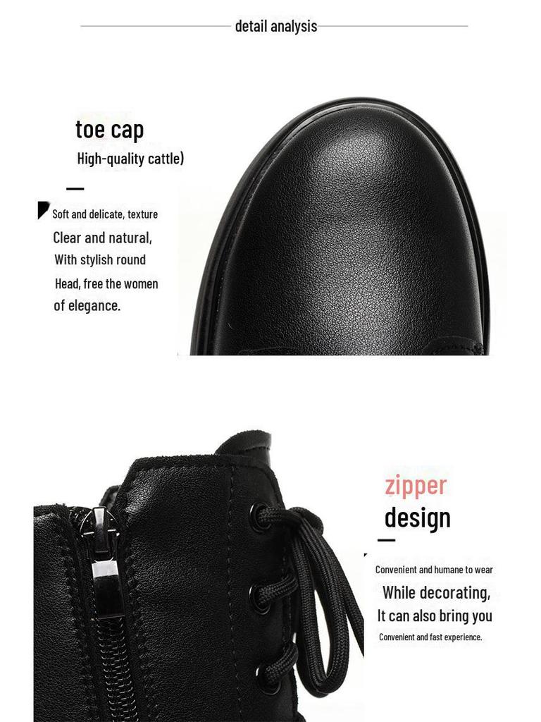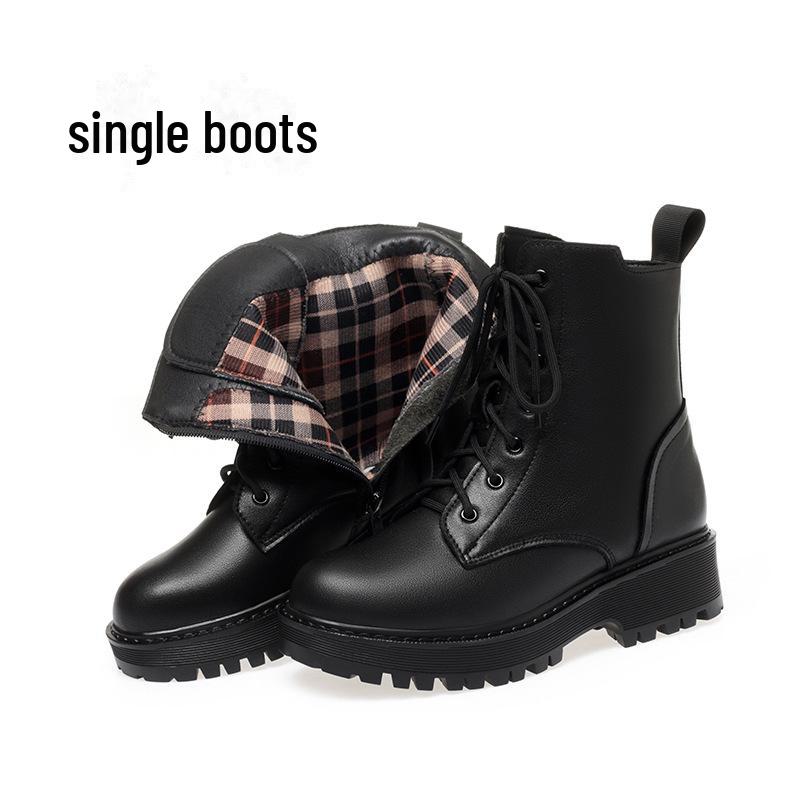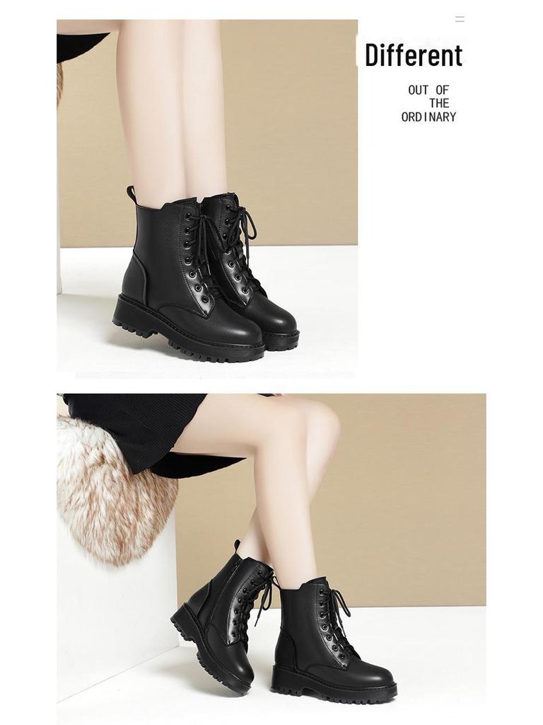 Женские ботинки Martin из натуральной кожи - Осень/Зима 2024, Низкий каблук, Утолщенный бархат, Плоская подошва, Подкладка из хлопка