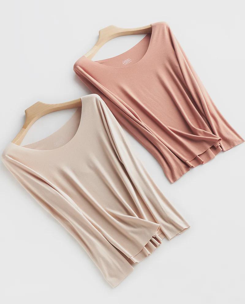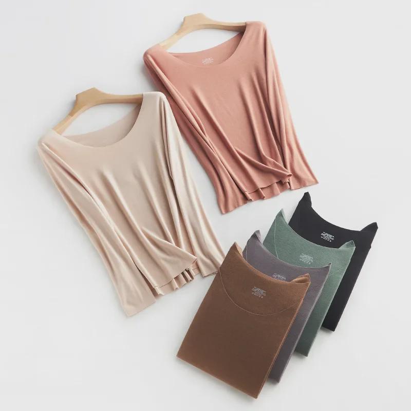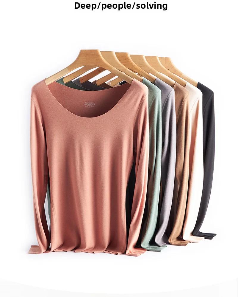 Осенне-зимний немецкий бархатный облегающий пуловер: Теплый однотонный топ с двойной отделкой, длинными рукавами и круглым вырезом.