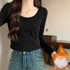 Белая Серая Хлопковая Женская Футболка с Большим U-образным Вырезом и Длинным Рукавом Осенне-Зимнего Дизайна, Открывающая Ключицы, Эластичный Облегающий Базовый Топ — купить товар онлайн с бесплатной доставкой по всему миру!