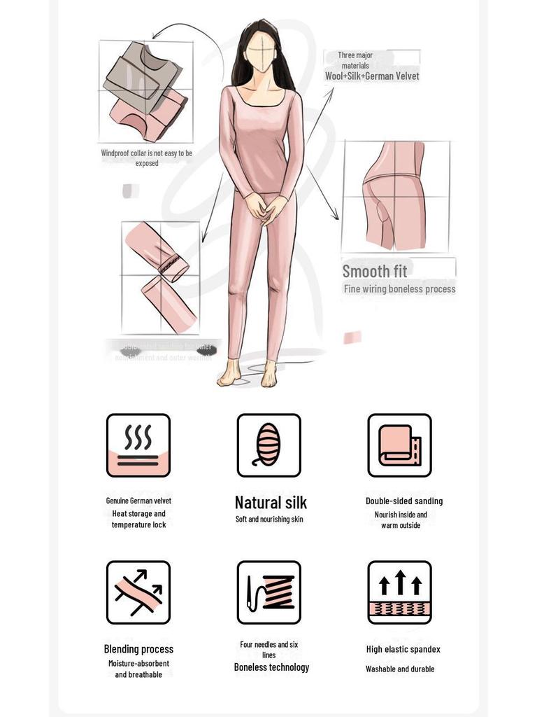 Откройте для себя максимальный комфорт и тепло с этим комплектом бесшовного термобелья из бархатного шелка для пар.. Этот плотный, теплый костюм, созданный специально для женщин, идеально подходит для осеннего и зимнего сезонов.. Изготовленный из высококачественного акрилового материала и меха деронга, комплект обеспечивает непревзойденную мягкость и уют.. Сплошной узор и длинный рукав придают изделию элегантный и неподвластный времени вид, что делает его стильным дополнением к вашему гардеробу для холодной погоды.