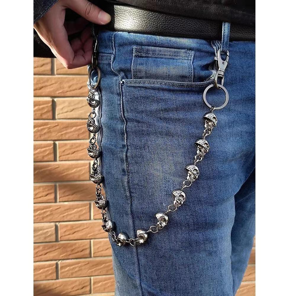 Винтажные мужские панк-ремни с цепочкой и черепами в стиле рок-панк, цепочка с индивидуальностью, джинсы с тяжелой талией и цепочкой