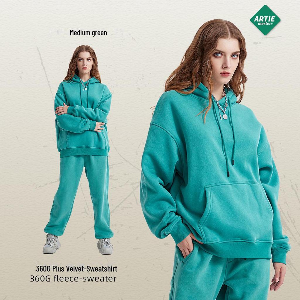 Почувствуйте максимальный комфорт и тепло в этом уютном свитере с капюшоном, созданном для осенне-зимнего сезона 2022 года.. Этот наряд с вырезом-стойкой и длинными рукавами изготовлен из высококачественного хлопкового материала.. Внутренняя часть отделана бархатом, что обеспечивает дополнительный слой тепла и делает ее идеальной для холодных дней.. Эта модель свободного кроя, доступная в однотонных цветах, соответствует как европейским, так и американским модным тенденциям, создавая образ, который неподвластен времени.. Идеально подходит для тех, кто в равной степени ценит стиль и комфорт.