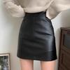 Женская узкая юбка А-силуэта из искусственной кожи - черная, облегающая бедра короткая юбка осень/зима