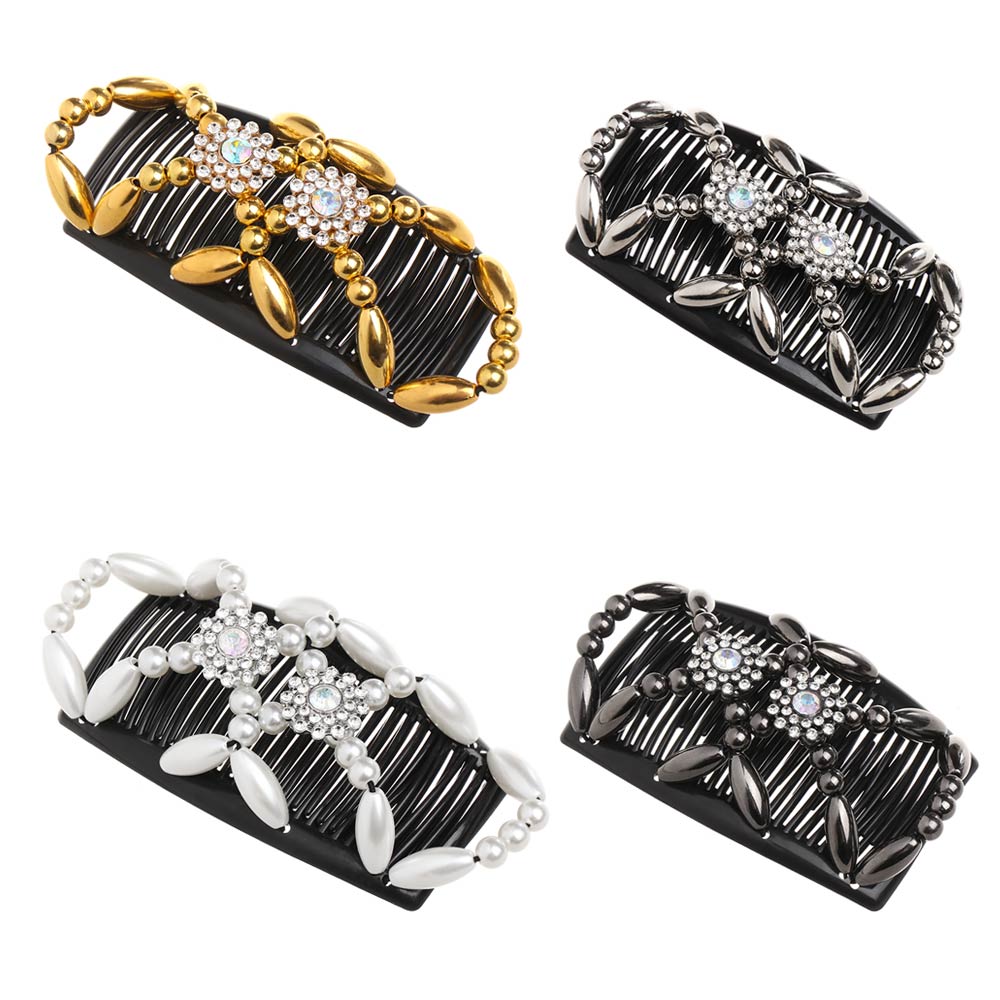 Handmade Flower Crystal Bun Maker Elastic Hairpin Beaded Hair Clip Double Comb Magic Hair Comb