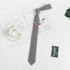 Корейский галстук из серой шерсти в трехцветную полоску шириной 5 см - мужской, деловой, черный, узкий