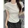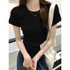 Футболка с короткими рукавами спереди на плече, летняя, новая, облегающая и маленькая, черная, короткая, для женщин