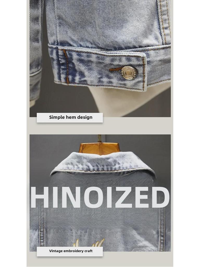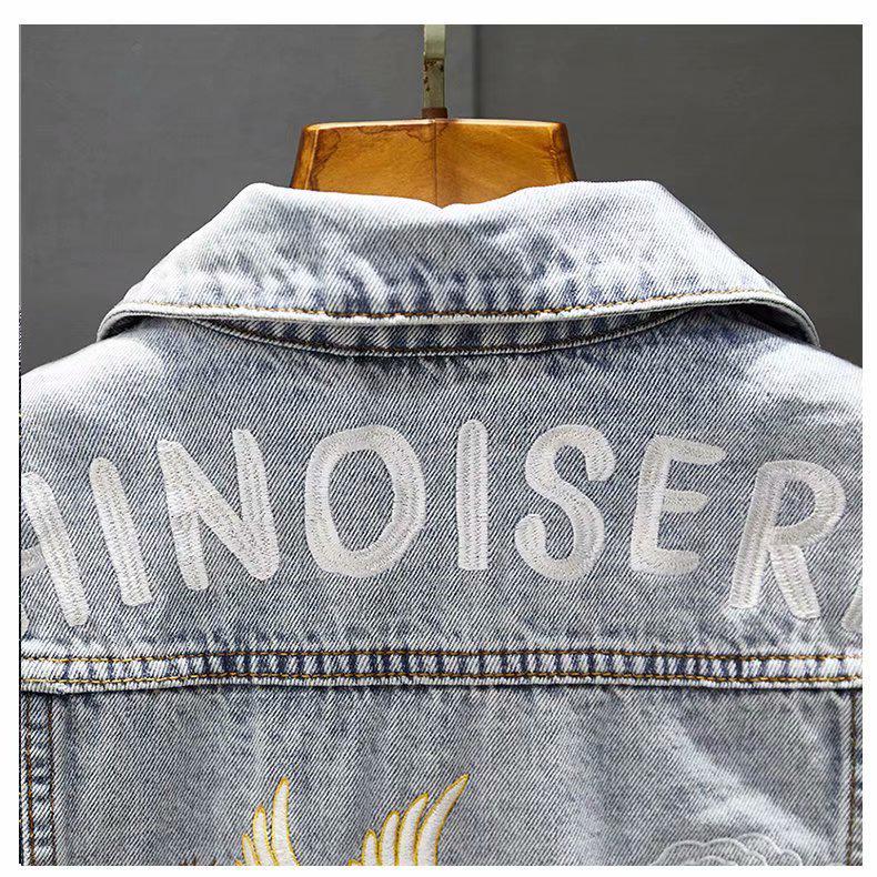 2023 Мужская джинсовая куртка в стиле ретро с вышивкой Slim - мода весна/осень