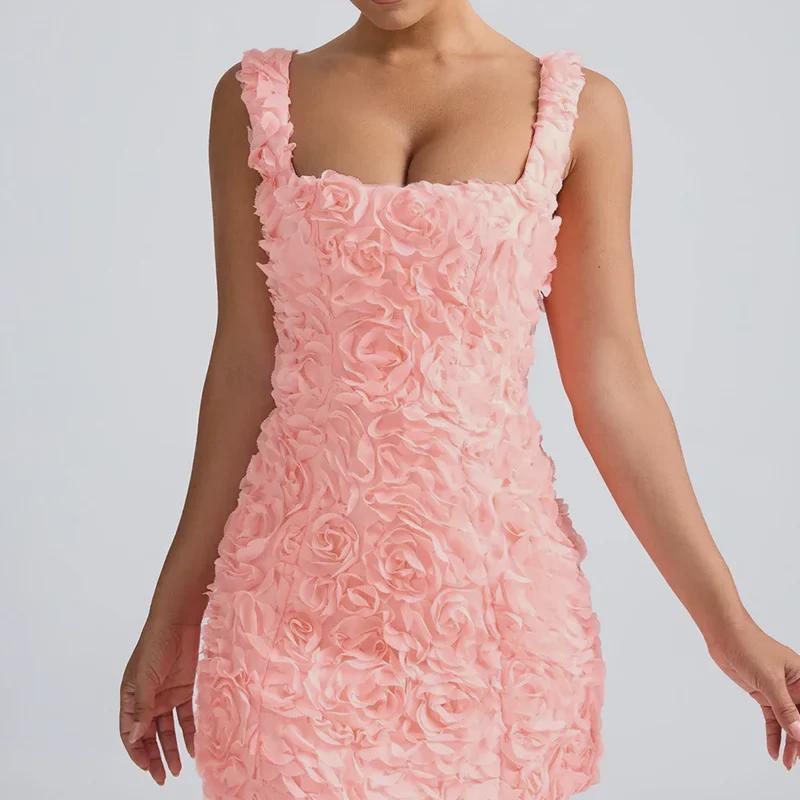 2025 Европейское и Американское Летнее Платье с Квадратным Вырезом Цветочные Тонкие Рукава Бретельках Платье