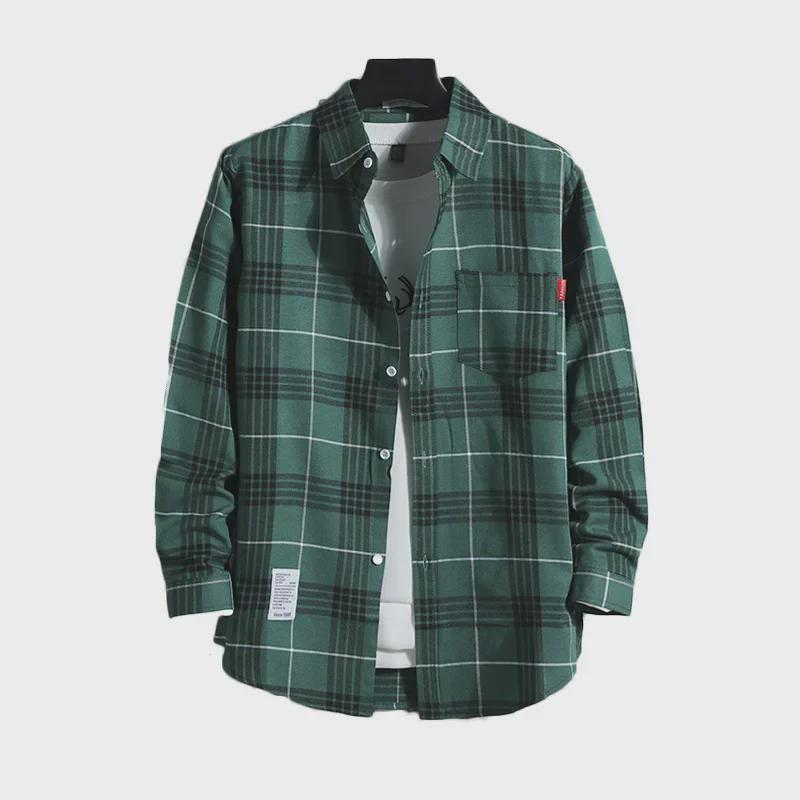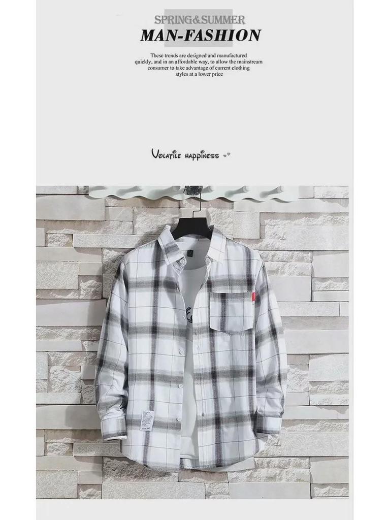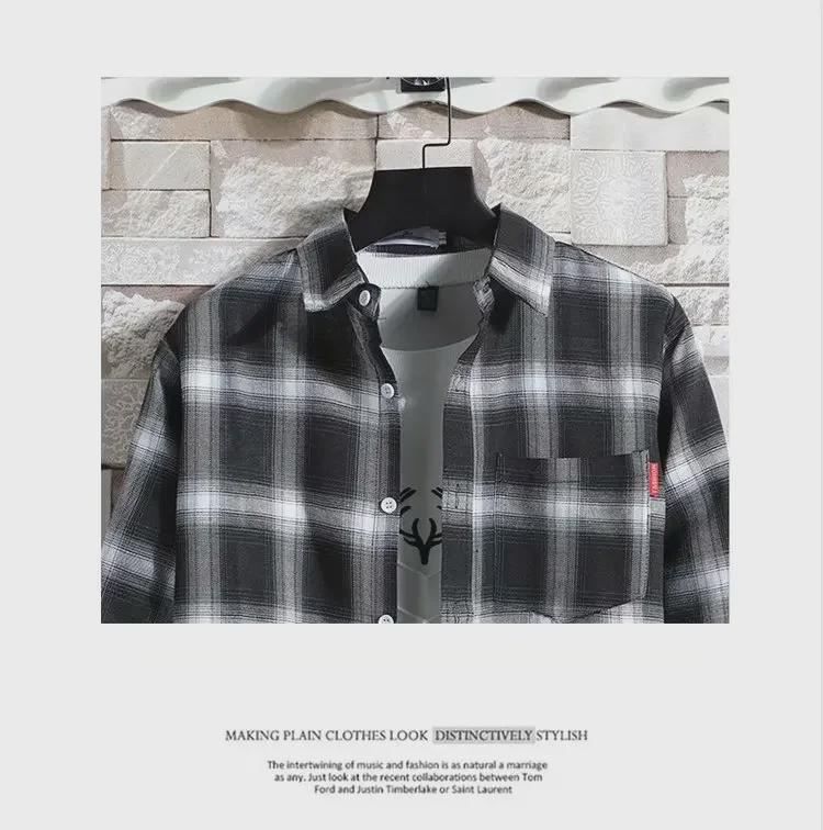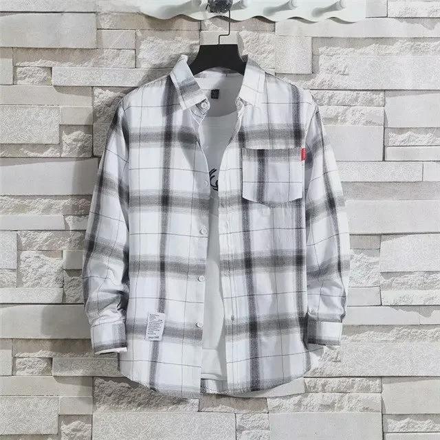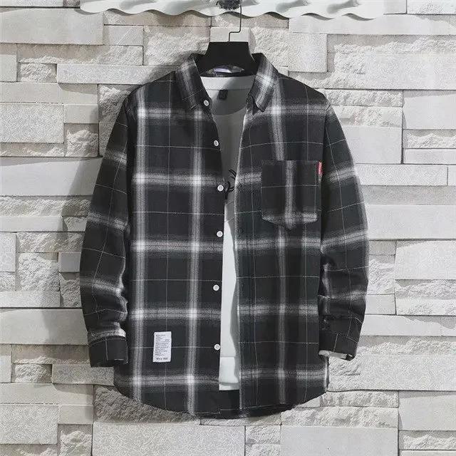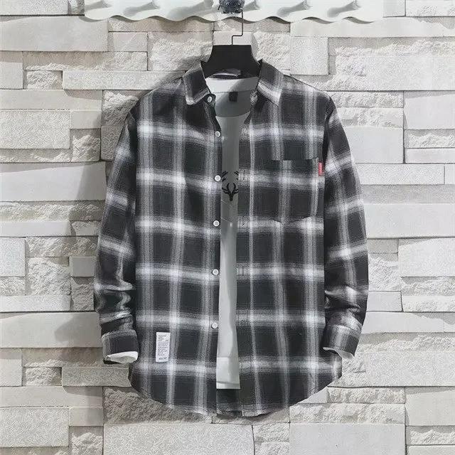 2024 Мужская теплая рубашка из бархата с длинным рукавом в клетку - Осень/Зима в корейском стиле