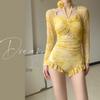 Стильный женский раздельный купальник с длинным рукавом и эффектом размытия, отбеливающий, с блузкой от солнца, для лета, горячих источников и студенток
