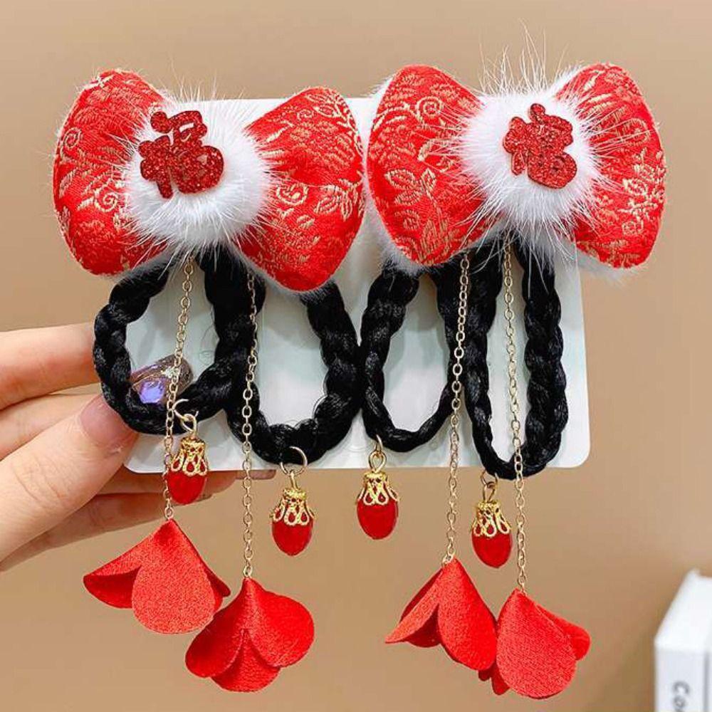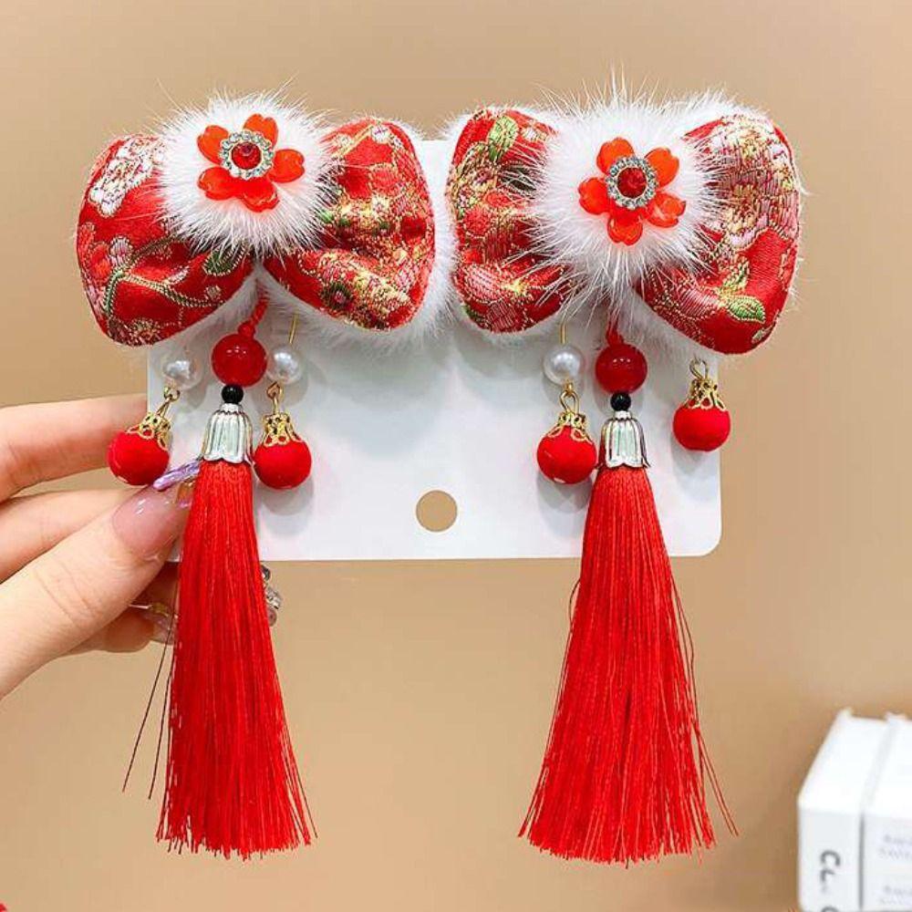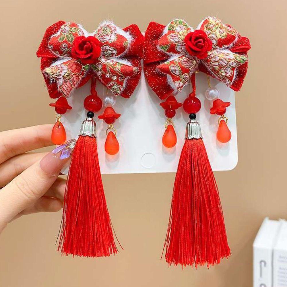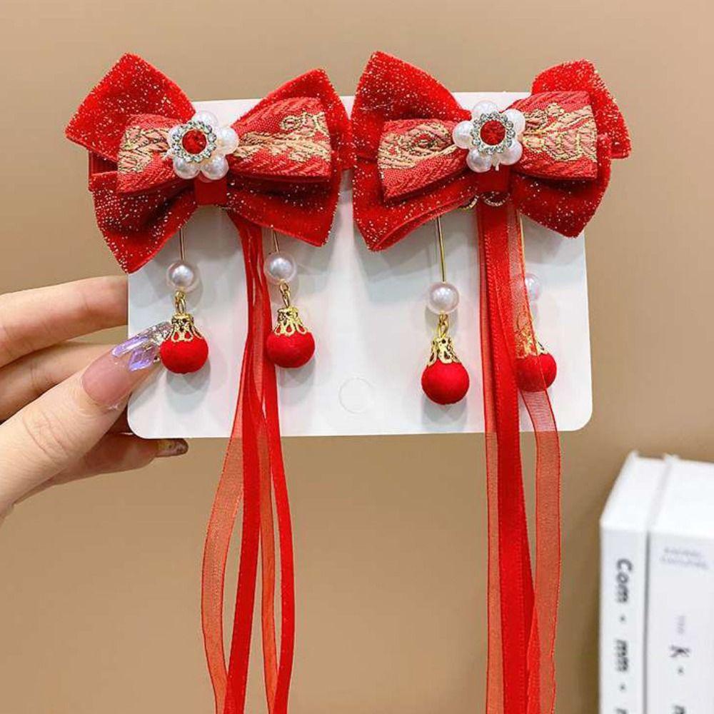 2 шт. головной убор ханьфу детские заколки для волос китайский стиль красная заколка-бантик милая заколка для парика косичка
