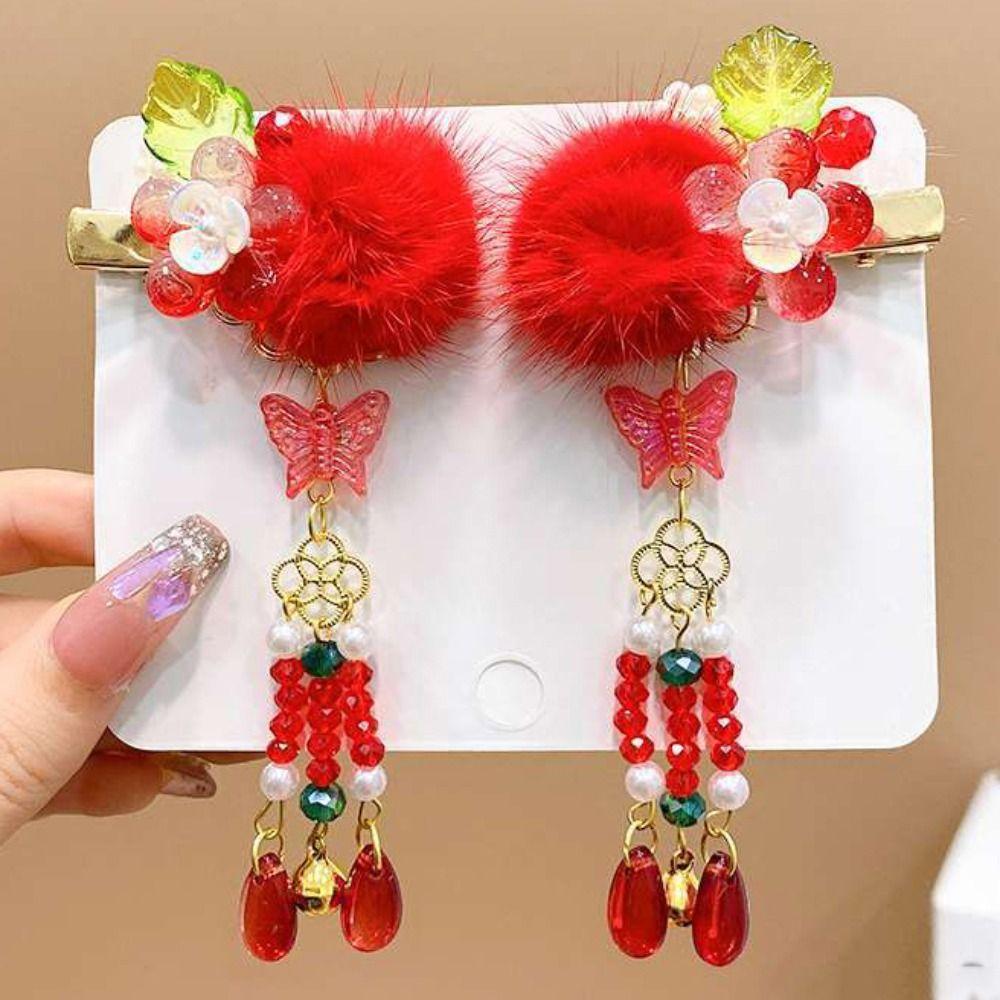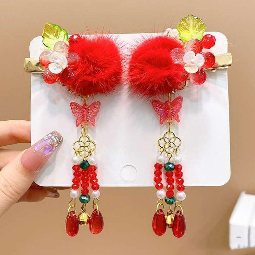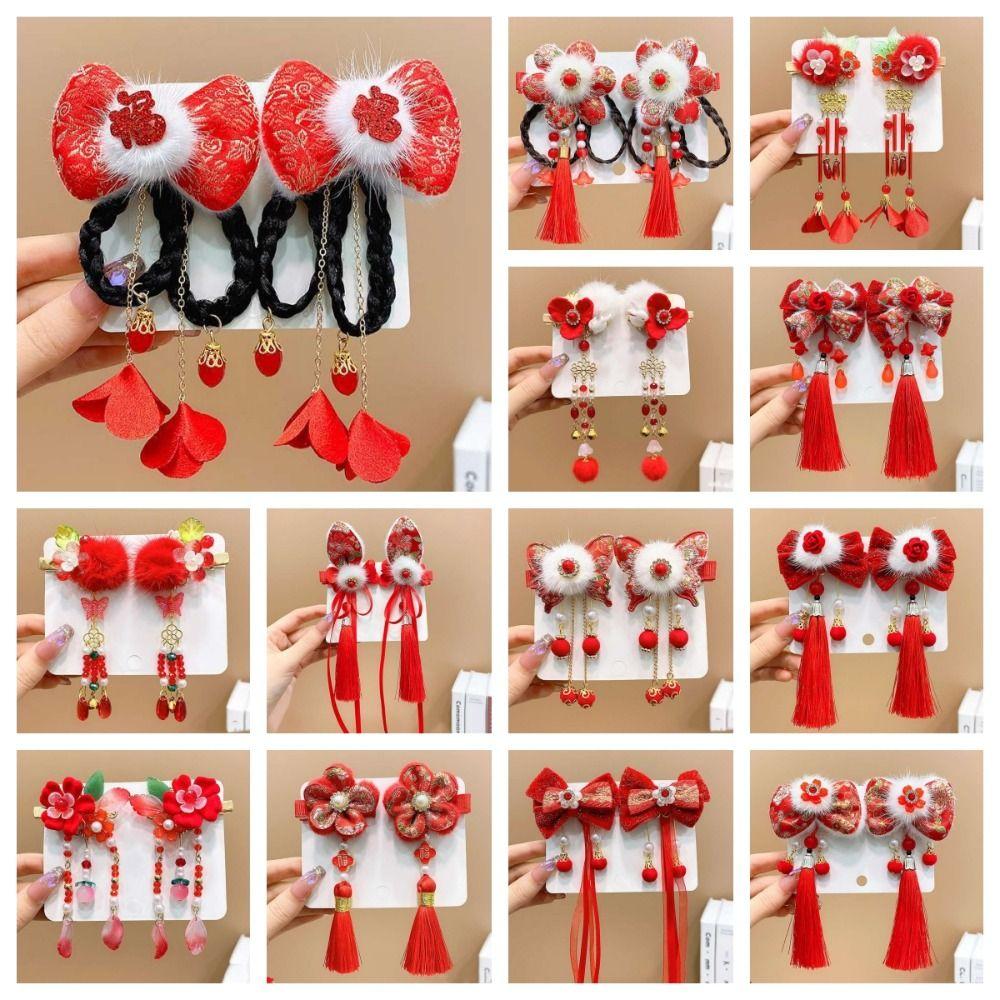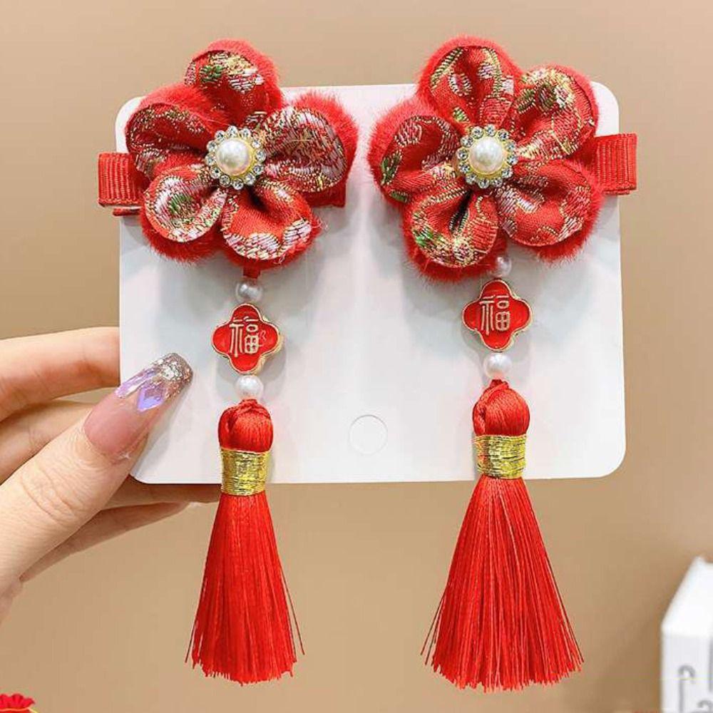 2 шт. головной убор ханьфу детские заколки для волос китайский стиль красная заколка-бантик милая заколка для парика косичка