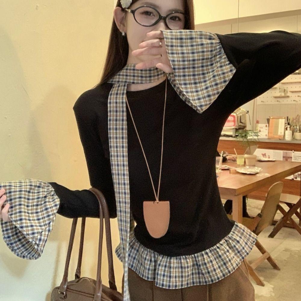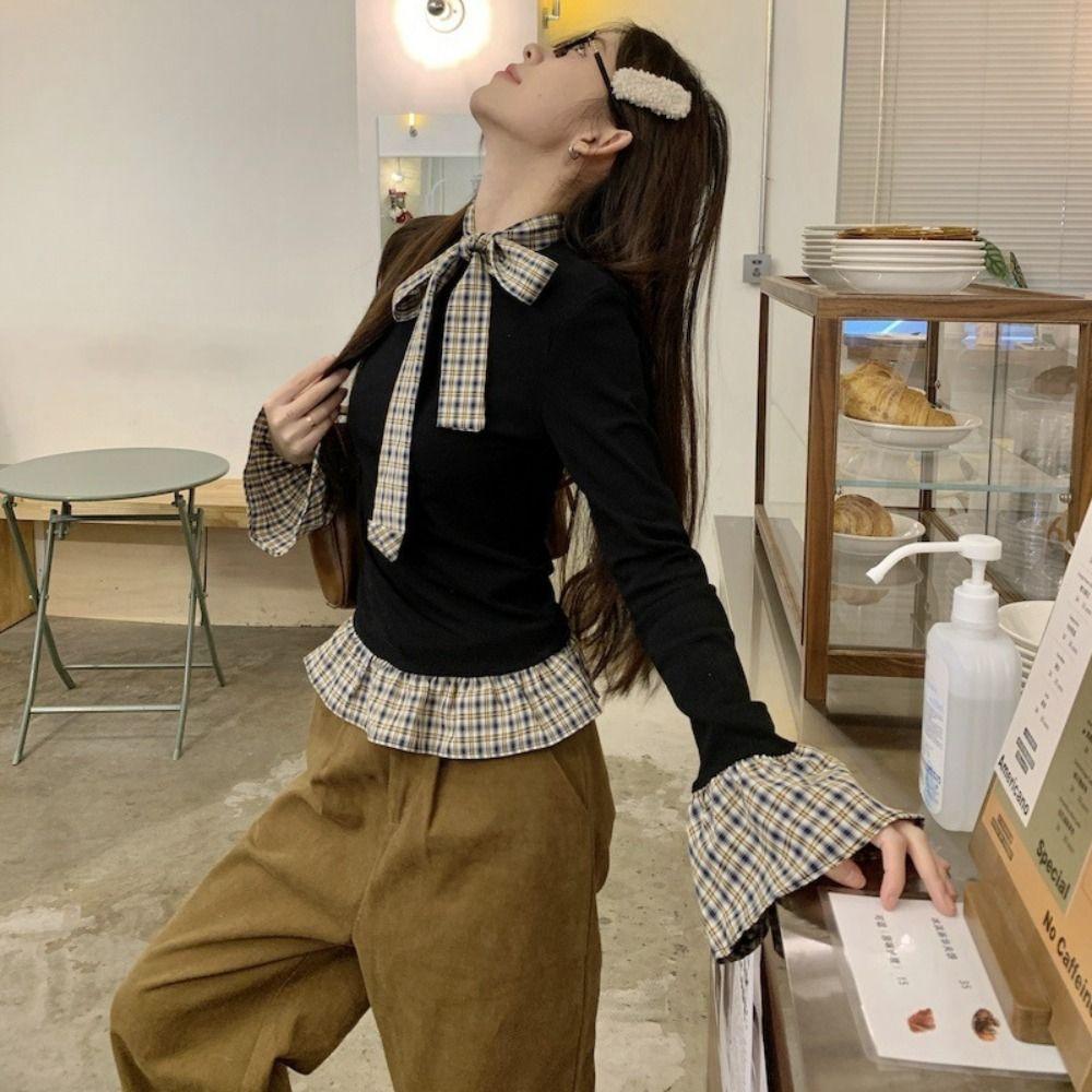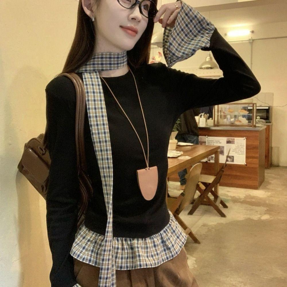 Милая искусственная футболка из двух частей, майки, облегающий топ, удобный топ с длинным рукавом для женщин