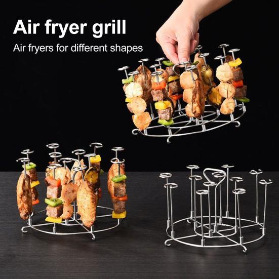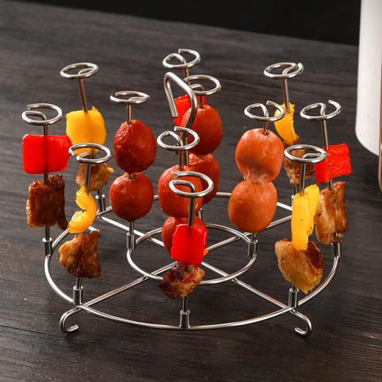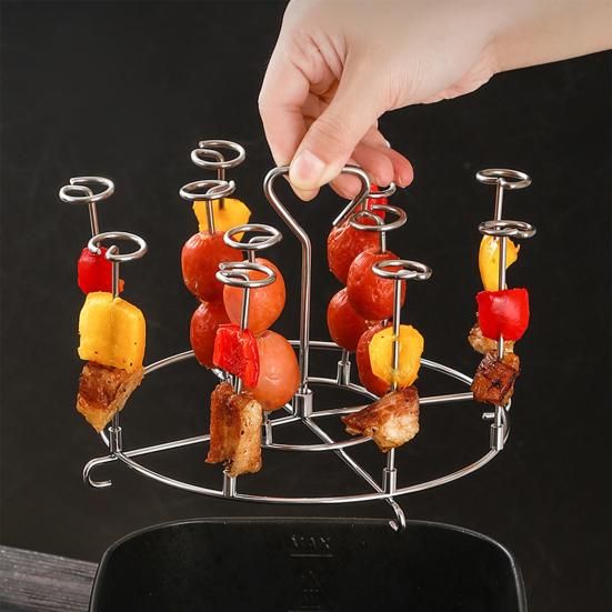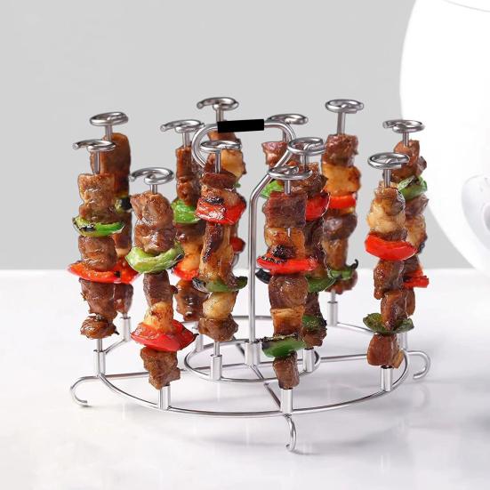 Универсальная подставка для кебаба: Эта стойка для шампуров с высокой вентиляцией, вмещающая 12 шашлыков, идеально подходит для различных блюд, таких как шашлыки, курица, мясо, морепродукты и овощи.. Наслаждайтесь разнообразными возможностями приготовления пищи с этим многофункциональным аксессуаром, который выведет ваши кулинарные творения на новый уровень.