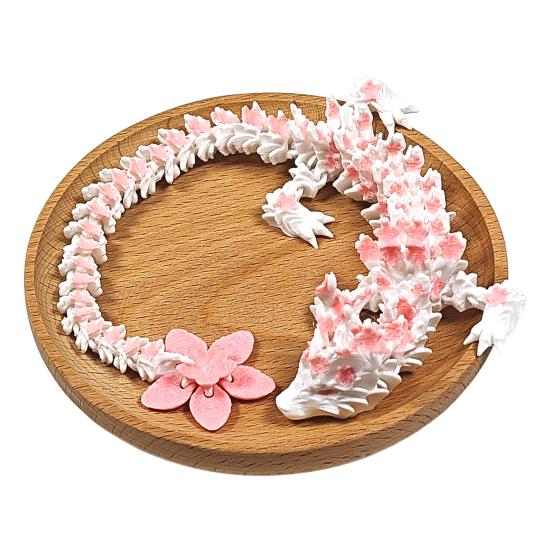 Представляем шарнирное украшение в виде дракона с вращающимся хвостом из цветков вишни, изящный и интерактивный аксессуар для стола, который также можно использовать в качестве игрушки для снятия стресса.. Эта уникальная модель имеет полностью подвижные суставы, что позволяет вам создавать динамичные позы и оживлять мифических существ..