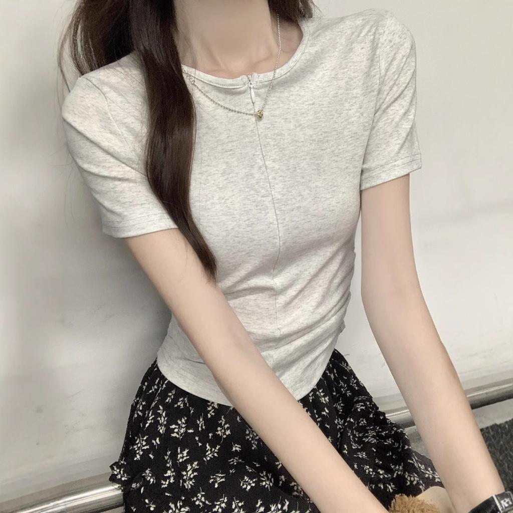 Футболка с короткими рукавами и складками по бокам на плечах, летняя новинка, укороченный топ с дизайном Niche, женская футболка