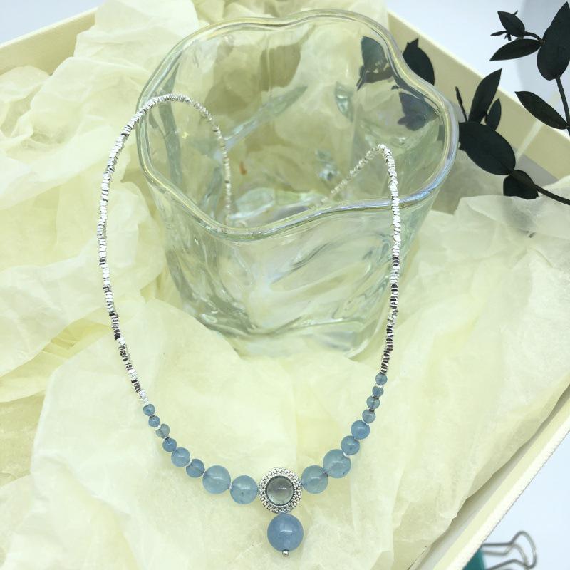 Ожерелье с градиентом из стерлингового серебра с аквамариновым оттенком - легкая роскошная цепочка на ключицу для женщин — купить товар онлайн с бесплатной доставкой по всему миру!