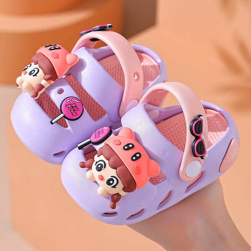 Сандалии для девочек, детские летние тапочки со съемной мягкой подошвой для дома, нескользящие, с рисунком для мальчиков