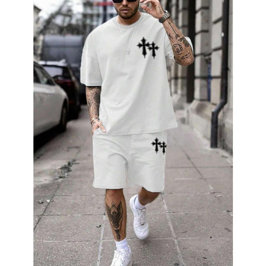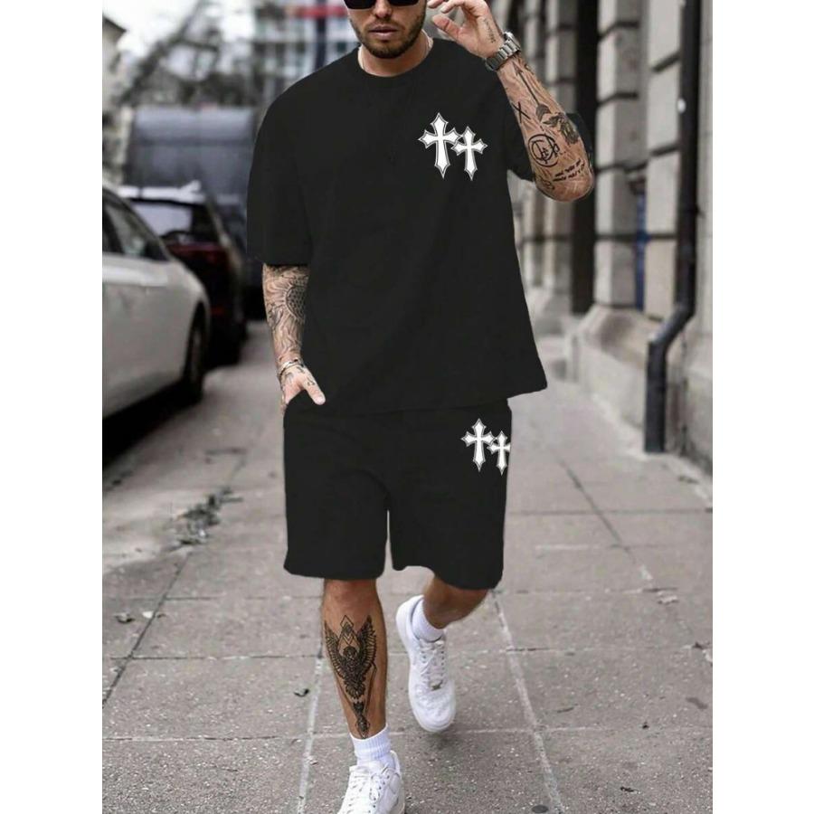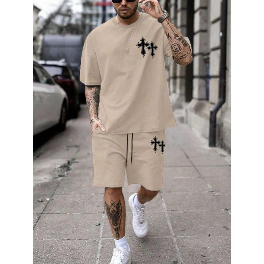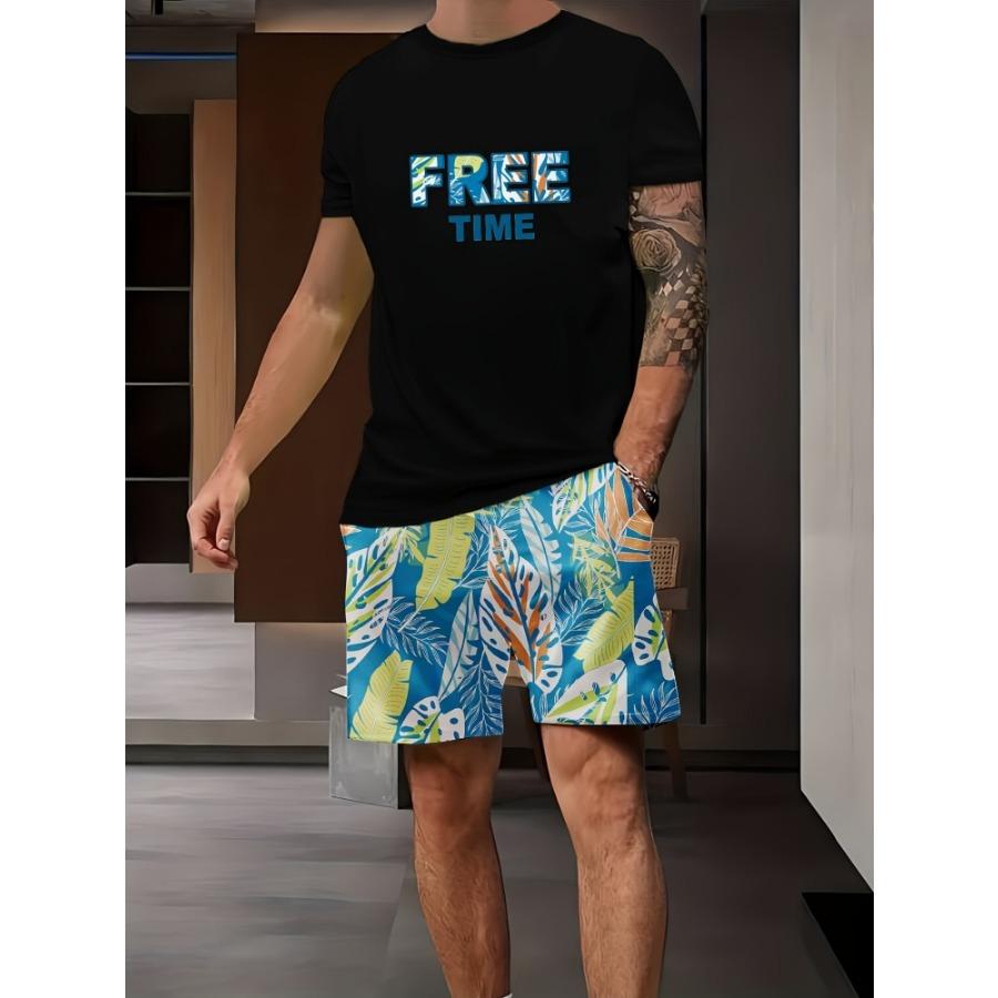 Комплект из 2 предметов: мужские шорты с коротким рукавом и винтажным принтом, летняя повседневная мужская футболка для спорта на открытом воздухе, мужские пляжные шорты