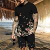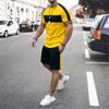 Мужской летний повседневный комплект из футболок, полосатая футболка с 3D-принтом, шорты с коротким рукавом, 2 предмета, свободный повседневный пляжный спортивный костюм