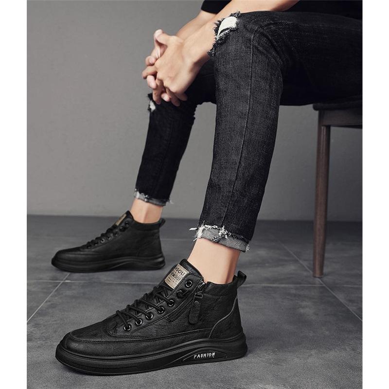 Мужская обувь в британском стиле, повседневная кожаная обувь, мужские черные высокие ботинки, водонепроницаемые ботинки Martin