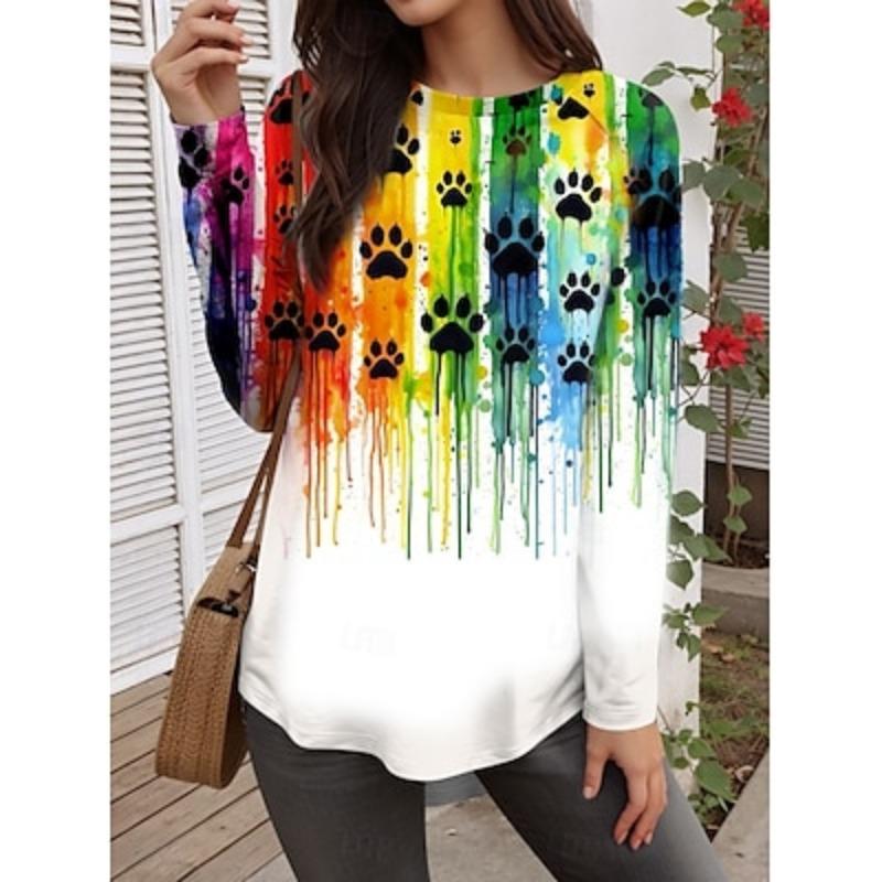Женская футболка с графическим принтом, повседневная, с длинным рукавом, круглым вырезом, длинные топы, повседневный принт, радуга, осень-зима — купить товар онлайн с бесплатной доставкой по всему миру!