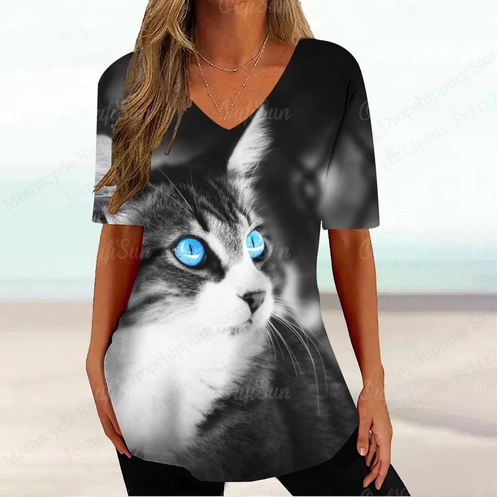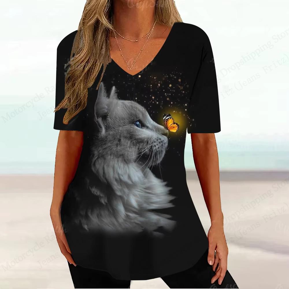 Новая женская футболка с цветочным узором и 3D-принтом, модная футболка с V-образным вырезом и коротким рукавом, летние повседневные топы, футболки, одежда с бабочками