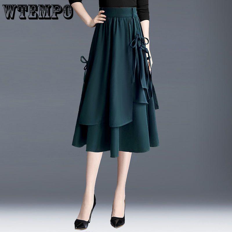 Весна и осень Юбка-полудлинная женская юбка А-силуэта с высокой талией Юбка средней длины для поездок на работу