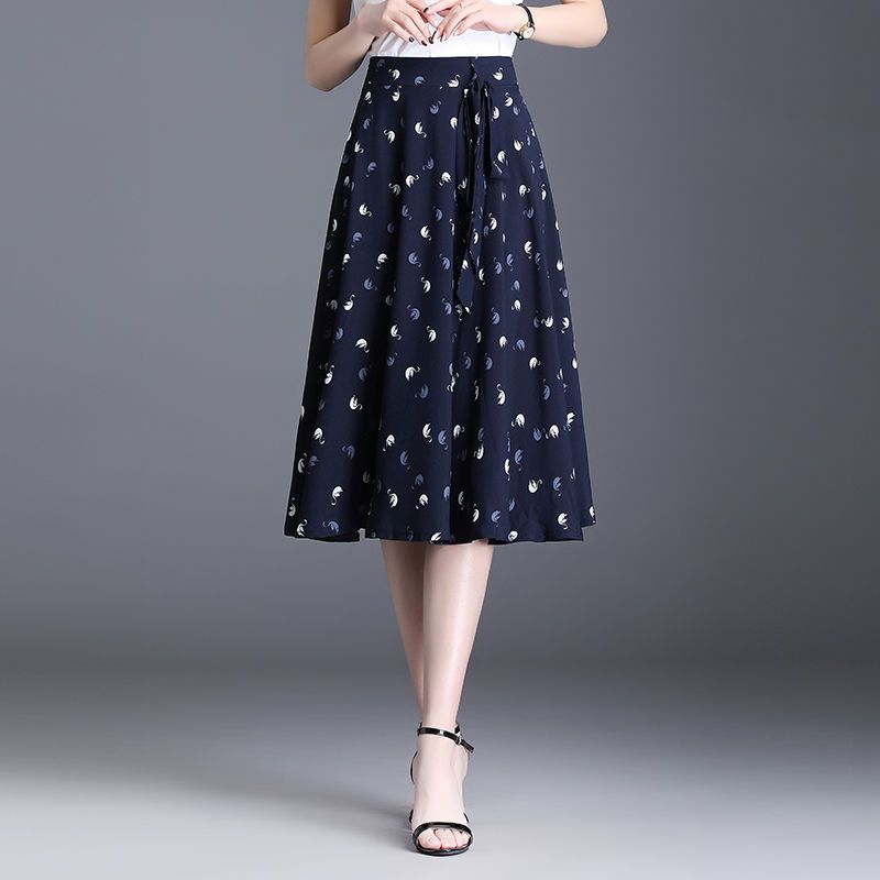 Женская летняя юбка с цветочным принтом и бантом, высокая талия, средняя длина, фасон А-силуэта, плиссированная юбка с принтом